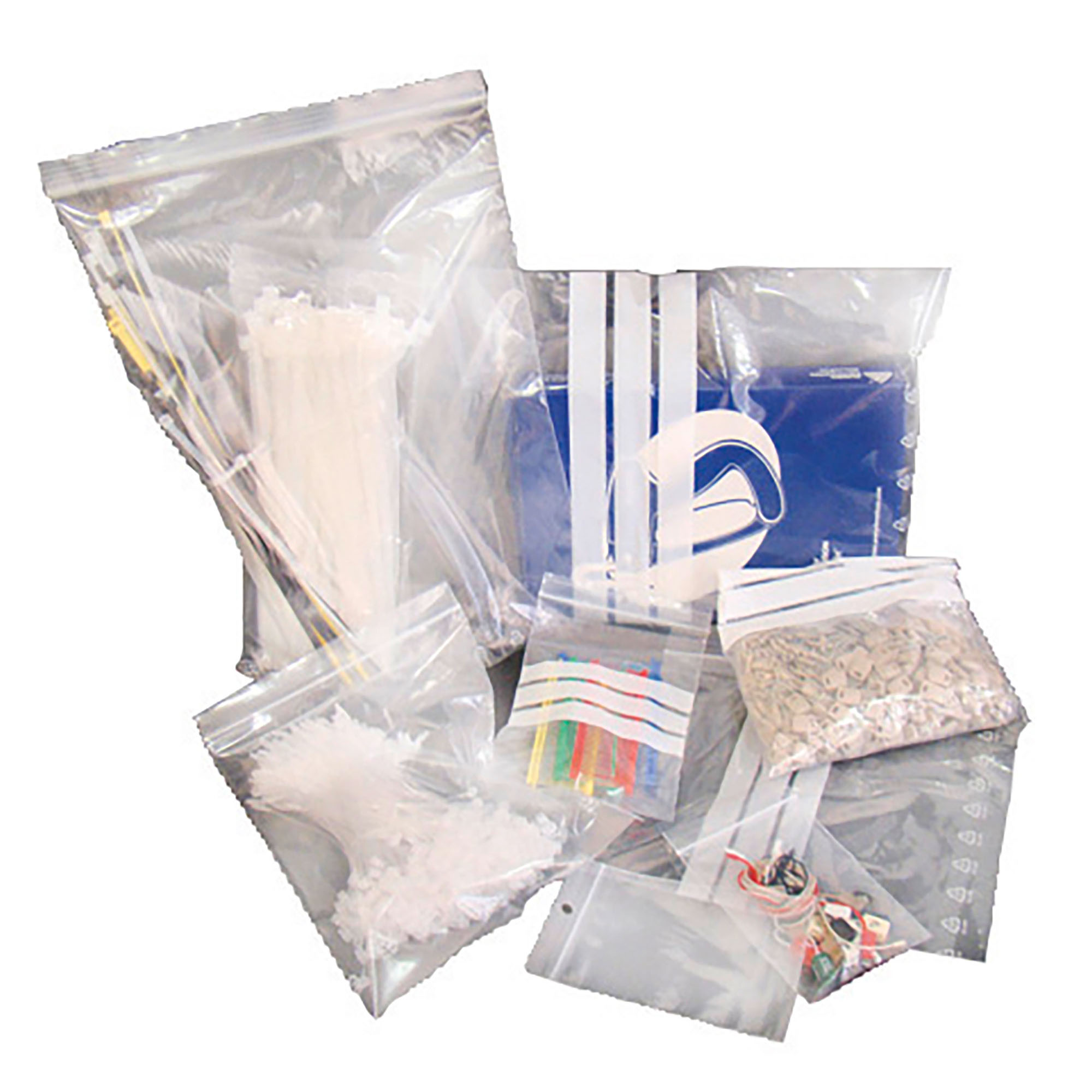 Descripción detalladaPaquetes de 100 bolsas transparentes de polietileno de 50 micras. Cierre a presión. Aptas para estar en contacto con alimentos. Con bandas de escritura para apuntar el contenido de la bolsita por ejemplo.
