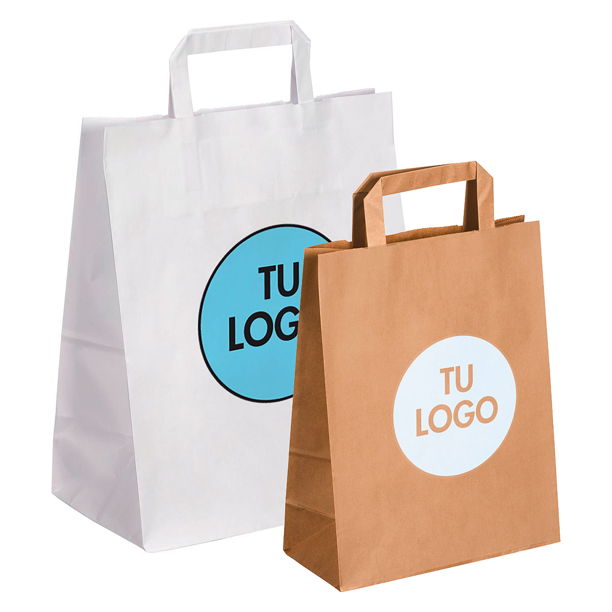 Bolsas de papel personalizadas a 1 tinta, 2 caras. Con asas planas.