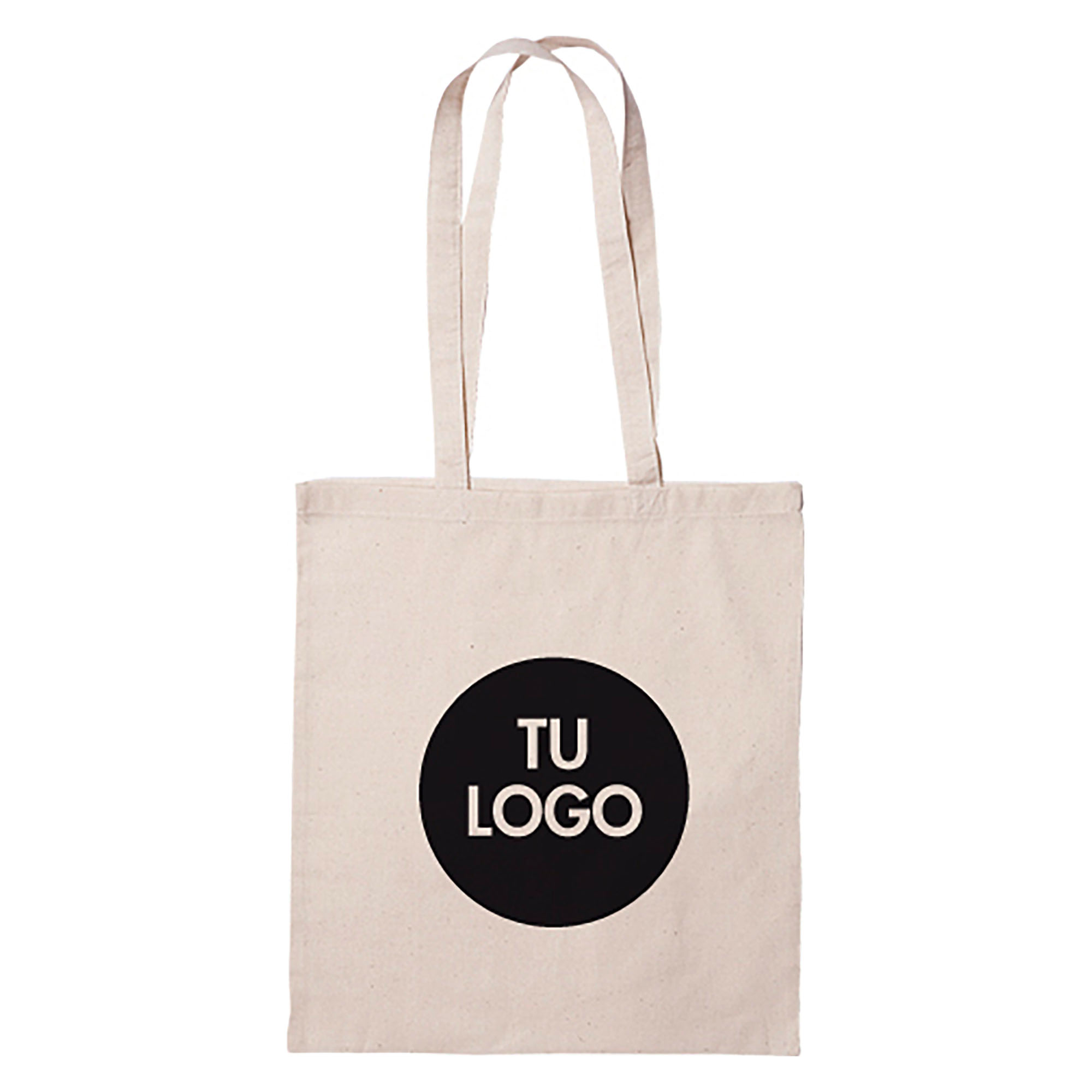 Bolsas algodón natural con asa larga. Impresión a 1 tinta y 1 cara.