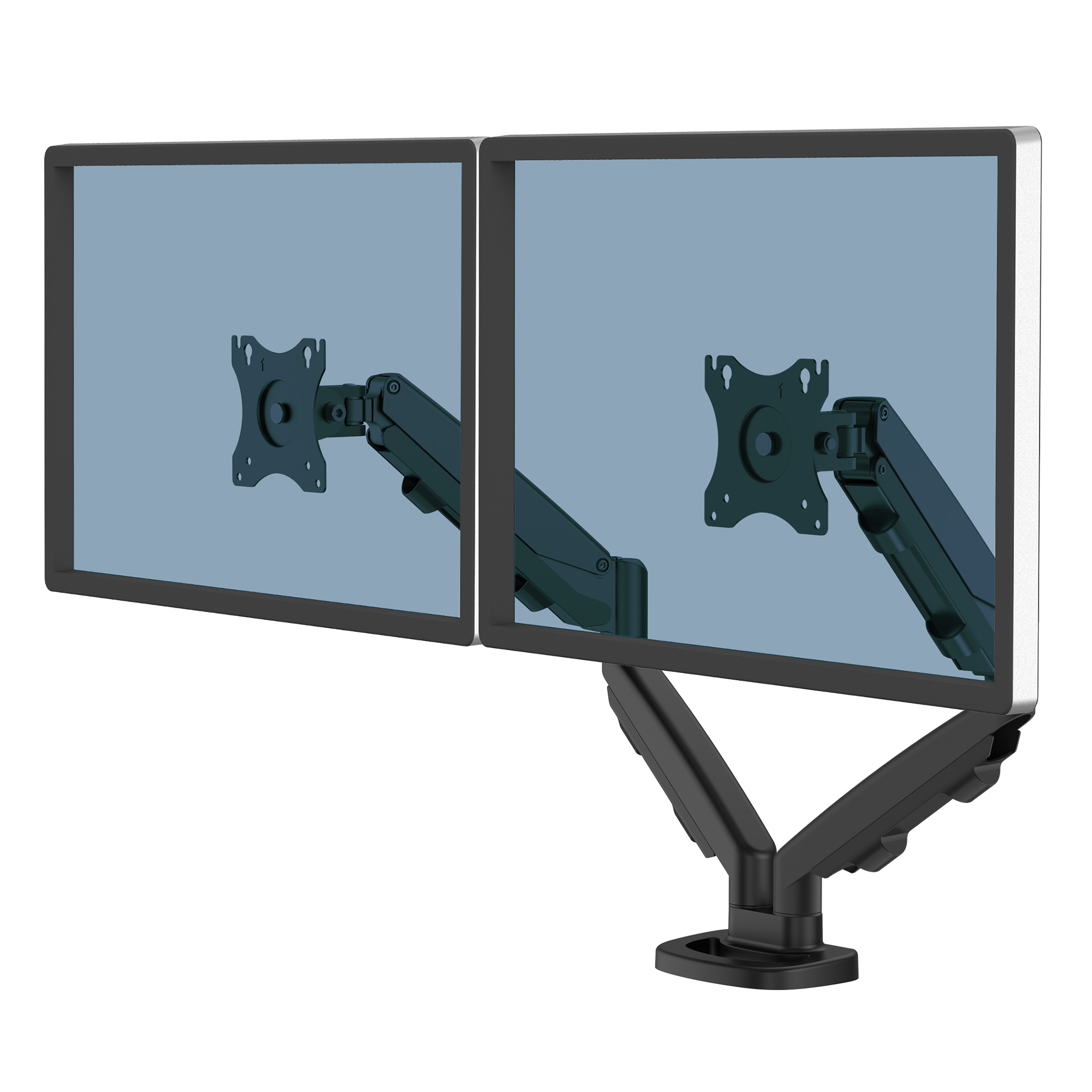 Incorpora sistema de muelle a gas, que permite mover los monitores sin esfuerzo, lo cual es ideal para cuando se necesita compartir la visualización de la pantalla. Diseño elegante con gestión de cables incorporada. Consigue la posición y el confort perfecto. Estos brazos son ajustables en altura a 26 cm y tienen un alcance máximo de 53 cm. Soporta monitores con un tamaño máximo de 30” (76.2cm) y un peso máximo de 8kg por brazo. Permite ser fijado a la mesa mediante pinza o a través de un ojal. Válido para mesas de entre 10-85 mm. Certificado por FIRA Internacional Ltd para cumplir con legislación de seguridad y salud Europea: EN ISO 9241-5