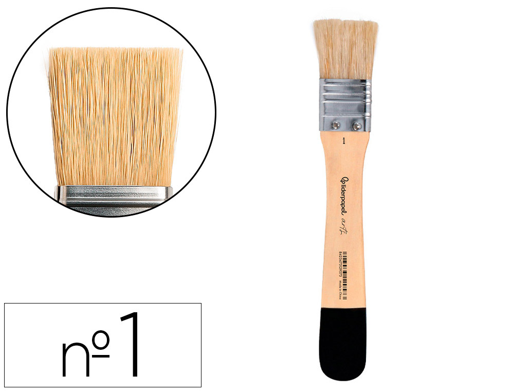 Brocha paletina plana Liderpapel ancho 25 mm de pelo de cerda certificado FSC. Este tipo de brocha es especialmente útil para trabajar con pinturas más espesas, como óleos y acrílicos, y es excelente para técnicas de empaste y para cubrir grandes superficies rápidamente. Una brocha paletina de pelo de cerda es una herramienta esencial para muchos artistas debido a su versatilidad y robustez. Las cerdas naturales de cerdo son conocidas por su rigidez y durabilidad, lo que las hace perfectas para técnicas que requieren una aplicación vigorosa de la pintura. Características Principales Cerdas Naturales: Las cerdas de cerdo son rígidas y resistentes, lo que permite una distribución uniforme de la pintura y la creación de texturas interesantes. Forma Ancha y Plana: La forma plana y ancha de la brocha paletina es ideal para cubrir grandes áreas de manera rápida y eficiente.