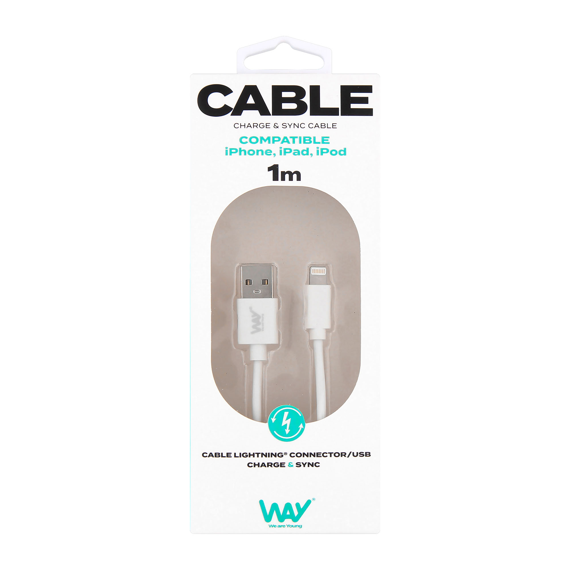 Descripción detalladaCargue y sincronice el cable USB a Lightning. Compatible con iPhone/iPad/iPod Longitud: 1 metro, Color blanco