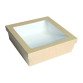 Caja cuadrada "Kray" de cartón marrón, ideal para presentar tus platos con estilo. Con 24,5 x 24,5 x 8 cm y 4200 ml de capacidad, es resistente (cartón 300gsm), reciclable y perfecta para el servicio para llevar o el congelador. ¡Conserva tus creaciones culinarias con elegancia! Paquete de 100 unidades.