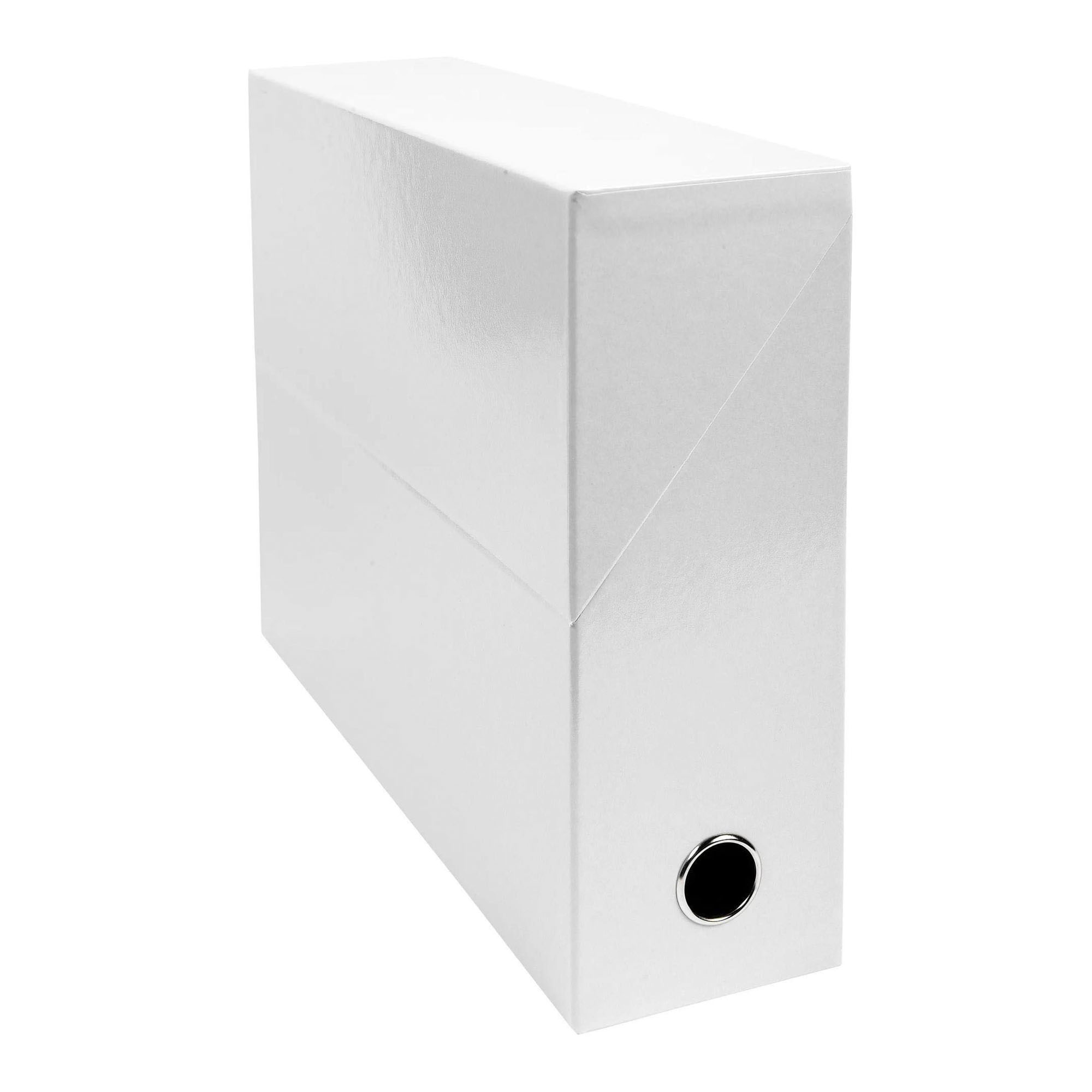 Fabricada en cartón teñido en masa, recubierta de una ligera película plástica que la protege, la caja de archivo Iderama es duradera y ecológica , certificada FSC®.