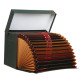 Fabricado en cartón forrado. Fondo doble con acordeón A-Z y 1-31.