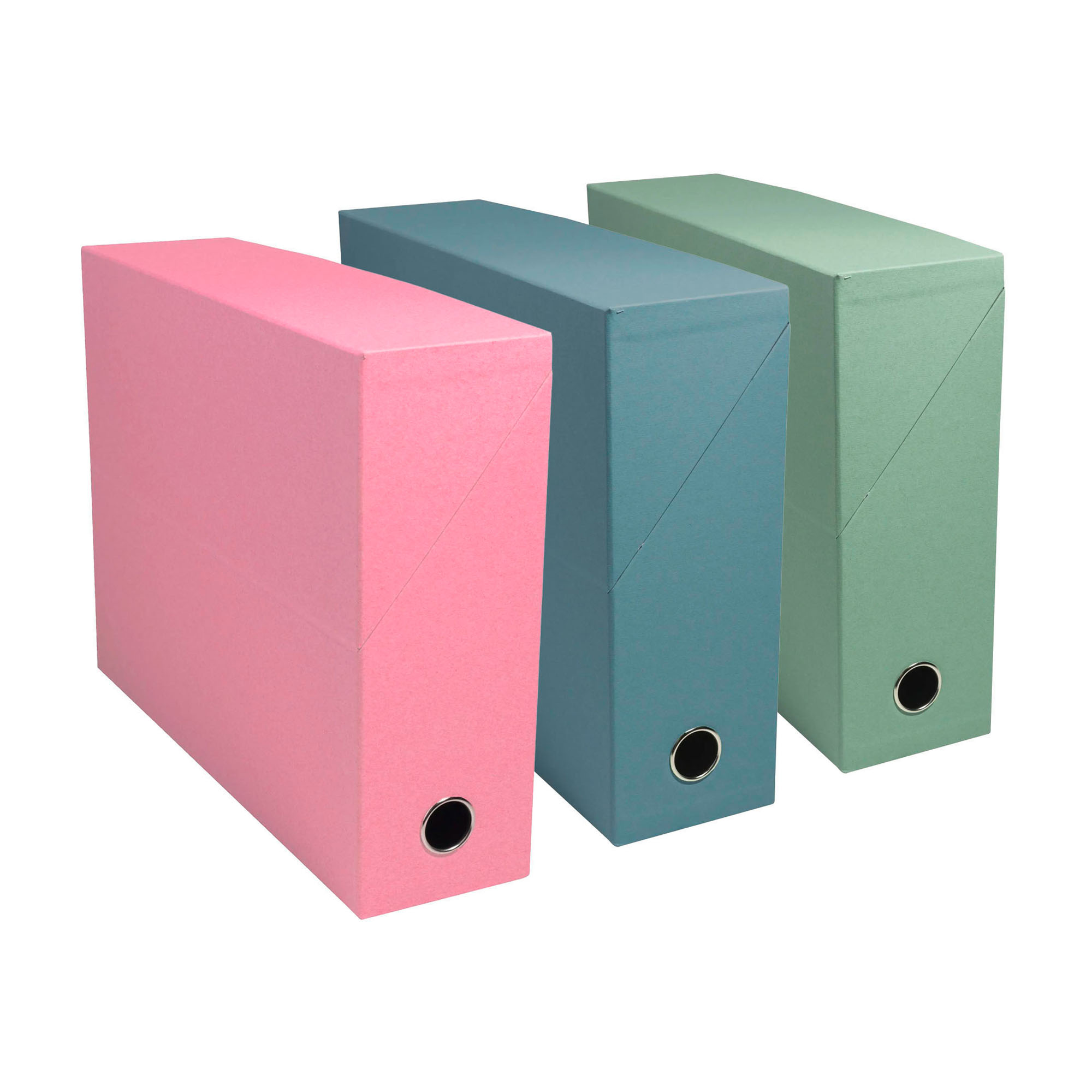 Descripción detalladaCartón reciclado rígido de 1,5 mm recubierto de papel reciclado. Ollao metálico de agarre Etiqueta adhesiva para identificar el contenido.Formato 25,5 x 34 cm para archivar A4+.Colores surtidos aleatorios entre azul ópalo, verde jade y rosa.