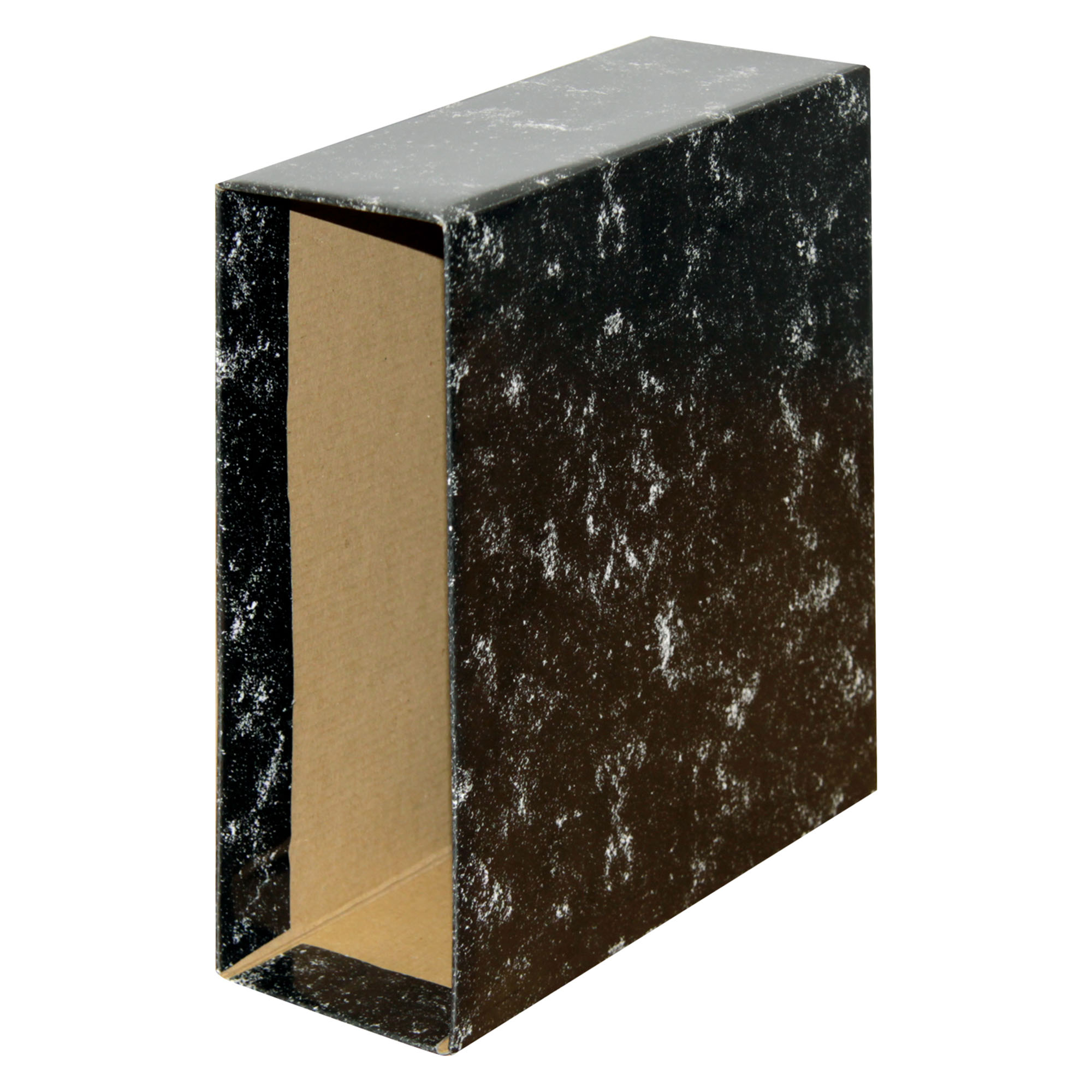 Descripción detalladaCajetín para archivador Formato A5 natural Lomo 7,5 cm Fabricado en cartón, color gris jaspeado.Dimensiones: Alt. 23,5 x Fon. 22 cm .