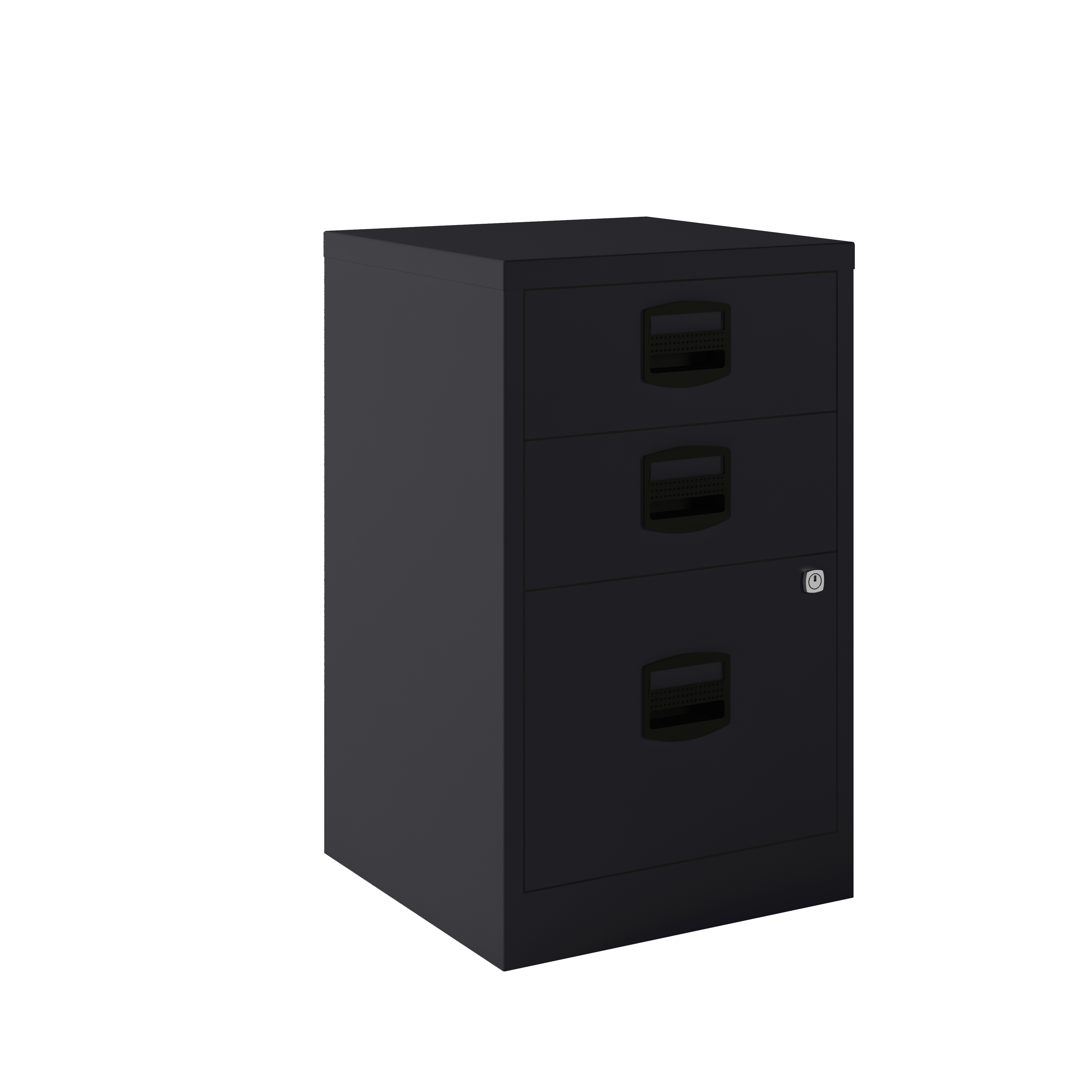 Cajonera metálica monoblock-montada 2 cajones archivo en plano y 1 cajón carpetas colgantes A4.