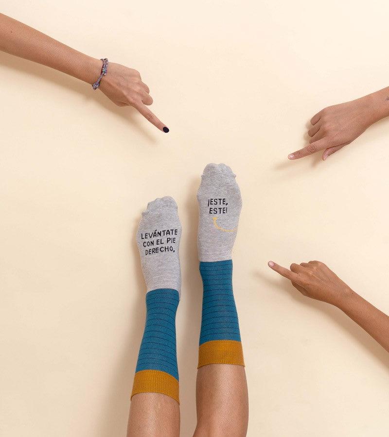 Los auténticos calcetines para levantarte con el pie derecho, sin confusión alguna. Irradian felicidad de la cabeza a los pies desde primera hora de la mañana para que el día salga completamente redondo. PERSONALÍZALOS POR +3 €