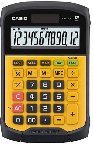 Pantalla LCD grande de 12 dígitos. Alimentación combinada solar y batería. Cálculo de porcentaje con margen de beneficio. Cálculo de beneficio. Cálculo de impuestos. 3 teclas de memoria. Tecla doble cero. Teclado desprendible y lavable. Cumple con la calificación IP54 de resistencia al agua y resistencia al polvo. Dimensiones: 3,3 x 10,9 x 16,9 cm. Peso: 175 g.