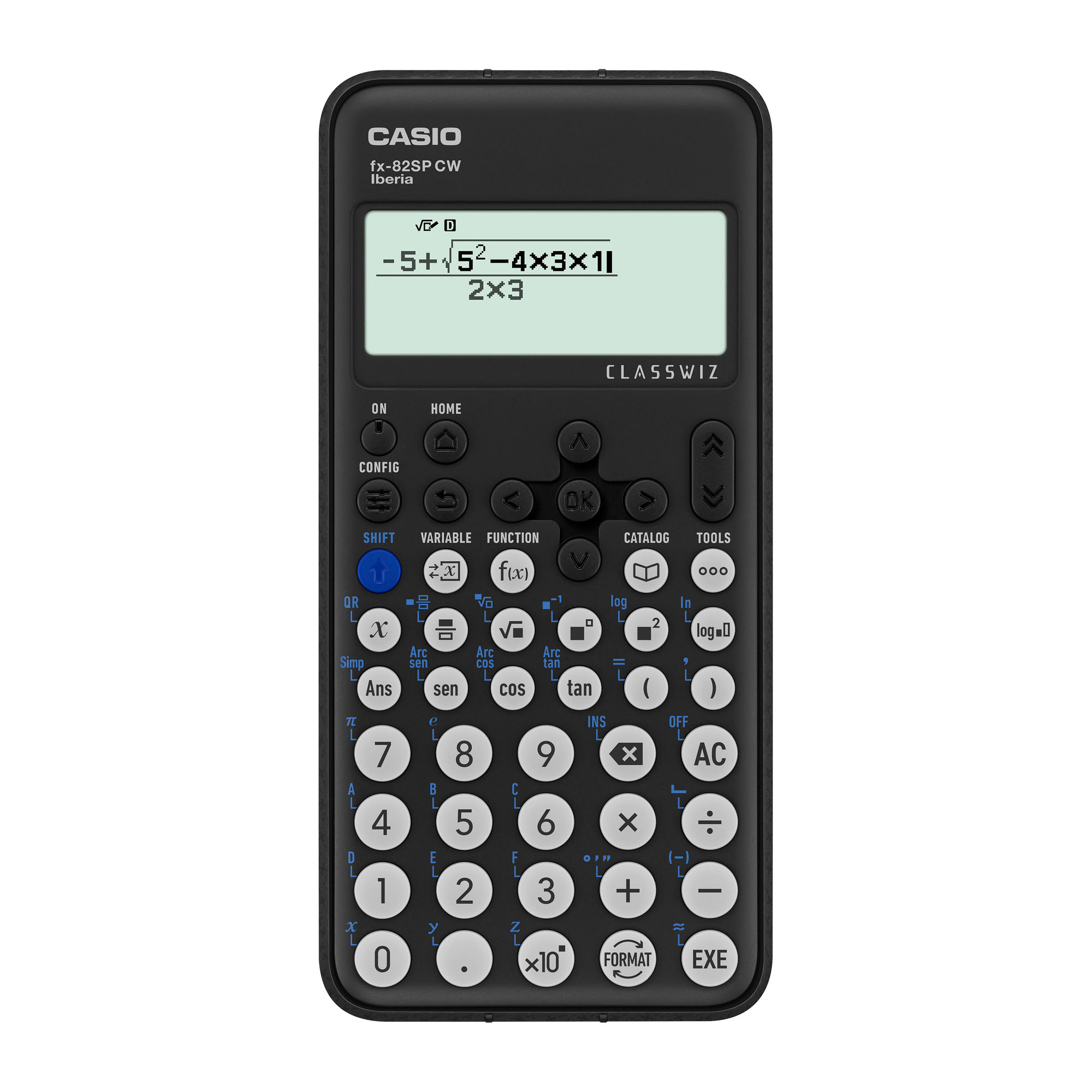 Calculadora científica con pantalla LCD de alta resolución 63x192 píxeles, 10+2 dígitos y visualización de 4 a 6 líneas.
