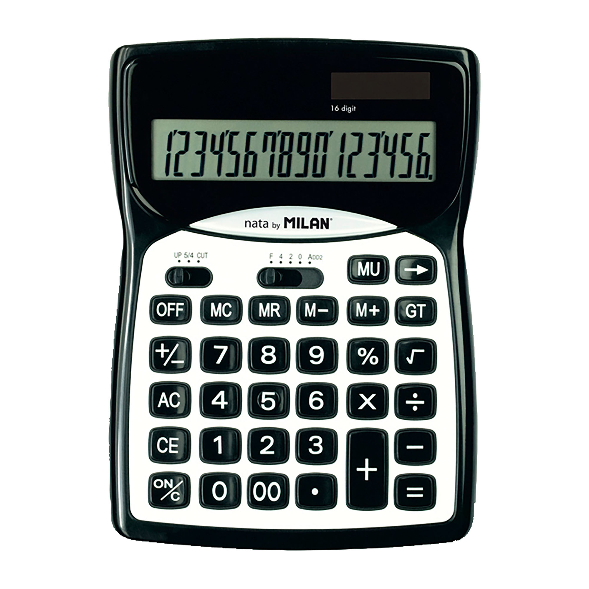 Descripción detalladaCalculadora de 16 dígitos. Cálculo de márgenes, memoria acumulativa de los resultados de las operaciones y raíz cuadrada. Alimentación dual: célula solar y pila de 1,5 V. Medidas calculadora: 18,7 x 13,5 x 2,5 cm. Color negro con panel blanco.