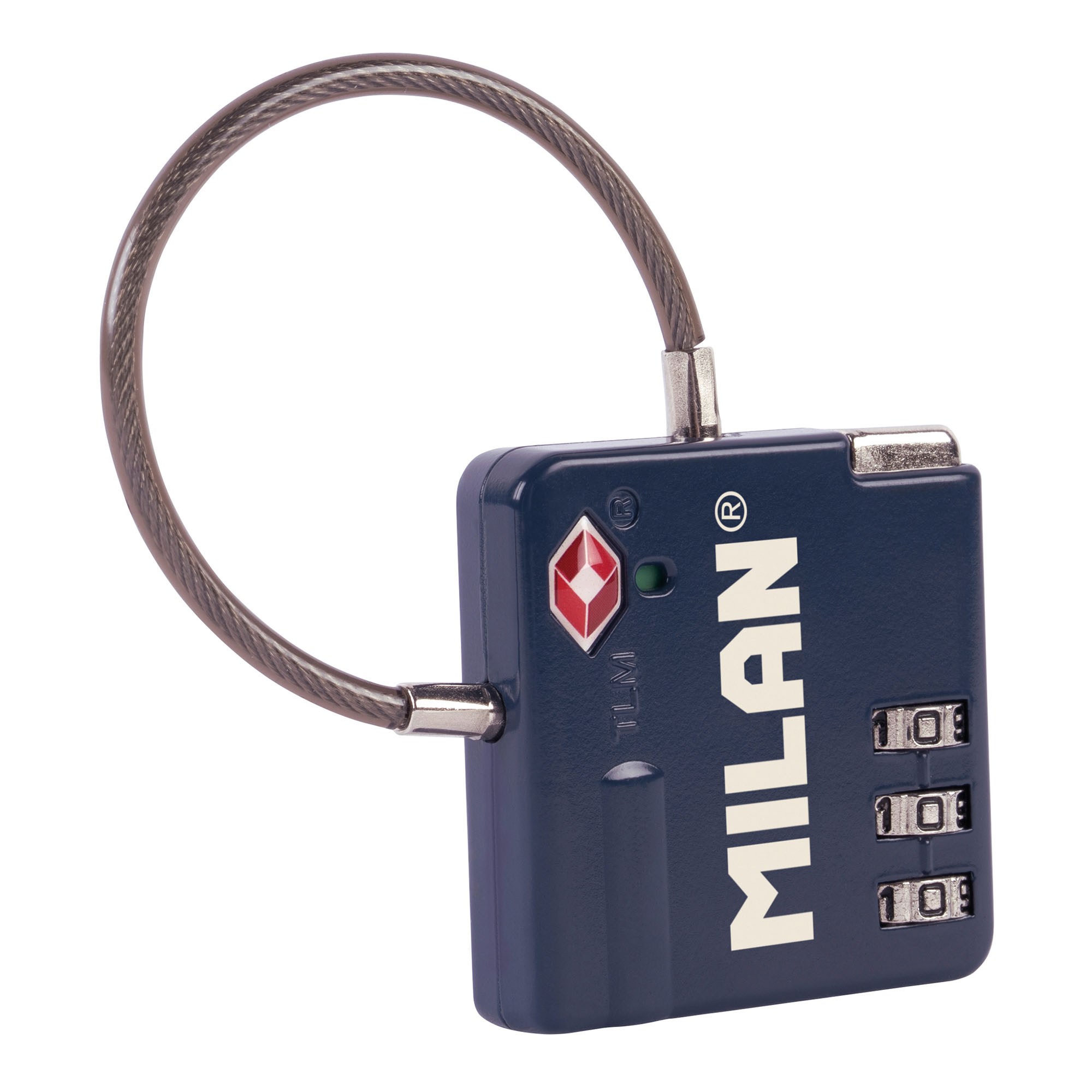 Candado metálico aprobado por la TSA (Travel Sentry Approved) que permite abrir y cerrar el candado sin romperlo, al revisar el equipaje.