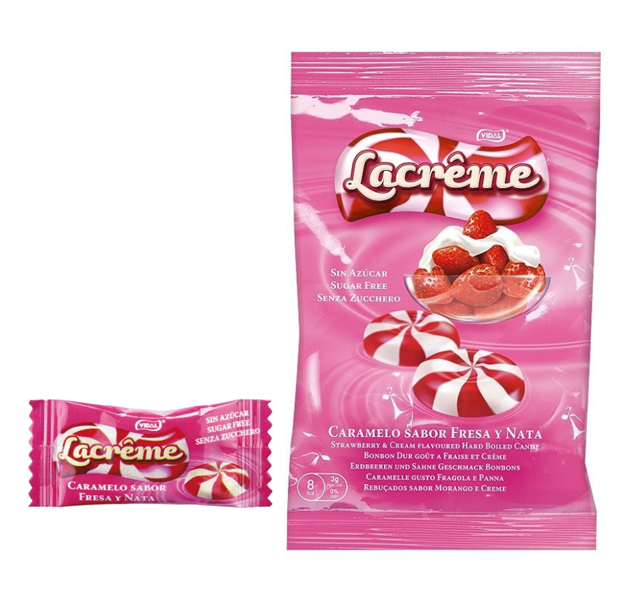 Caramelo fresa-nata sin azúcares de la marca Vidal.