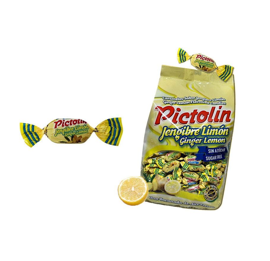 Caramelos sin azúcar de la marca Pictolín con extracto de jengibre y un toque de limón.