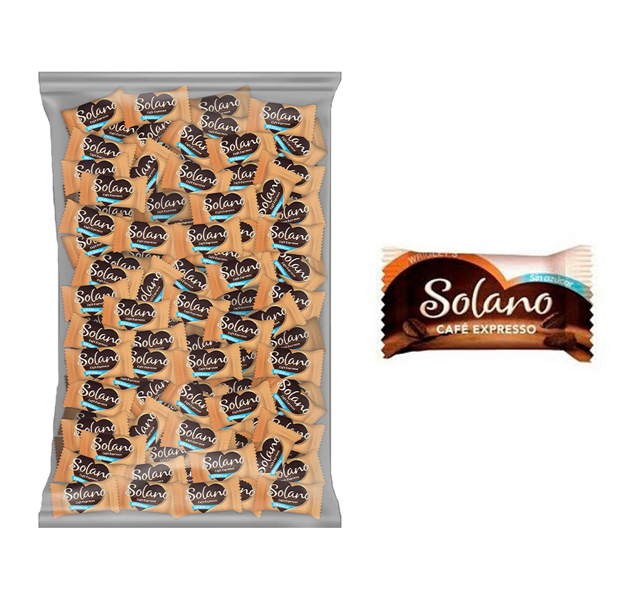 Caramelo duro sin azúcar con edulcorantes y aromas de café y nata.