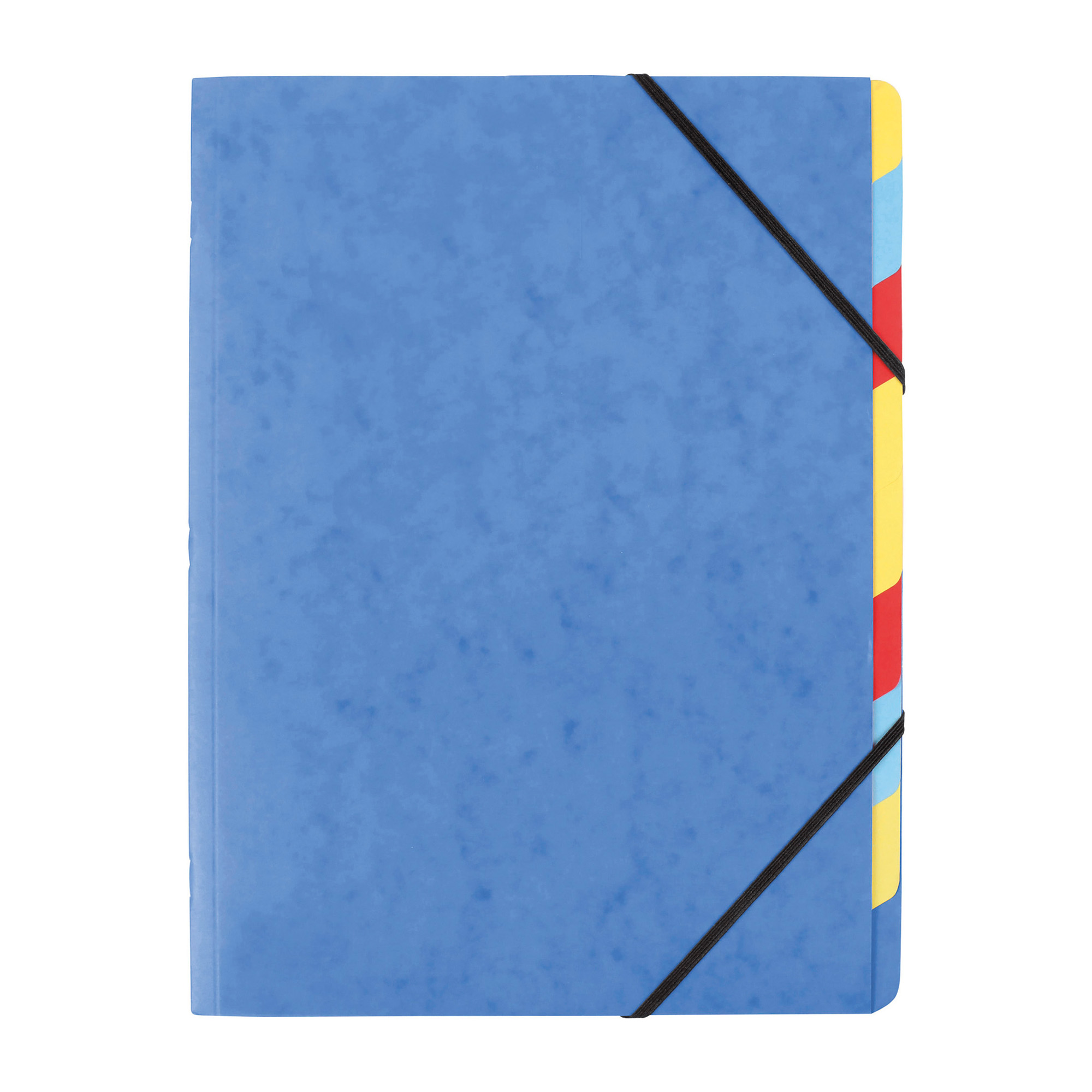 Cierre con gomas y 7 pestañas aseguran una organización de los documentos por colores