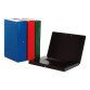 Cierre con gancho. Cartón brillante 1,2 mm. Formato Folio. Lomo 70 mm. Gramaje: 980 g.
