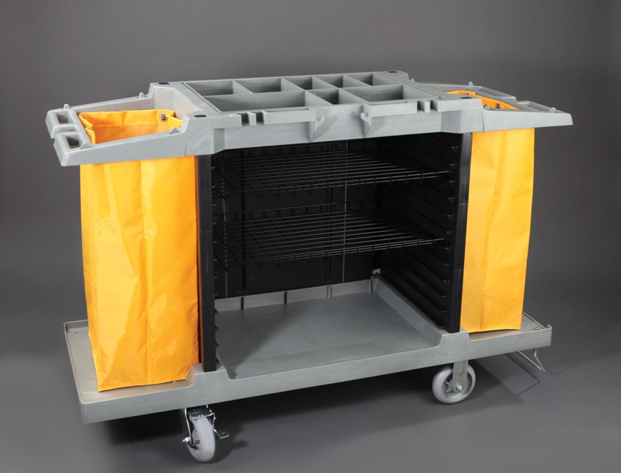 Estructura de gran resistencia y capacidad de carga. Fabricado en polietileno de alta densidad de caterogía alimentaria. Con ruedas traseras y frontales giratorias de alta resistencia. Bandejas internas extraibles y guiadas. Producto específico para limpieza y recogida en hostelería y grandes superficies.