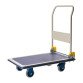 Estructura de plataforma de acero lacado. Revestimiento antideslizante. Banda de caucho paragolpes. Asa abatible con mecanismo antipellizcos. 4 ruedas silenciosas de nylon. 10 cm de diámetro para modelo estándar. 13 cm de diámetro para el modelo gran plataforma. 2 ruedas pivotantes que facilitan la movilidad.