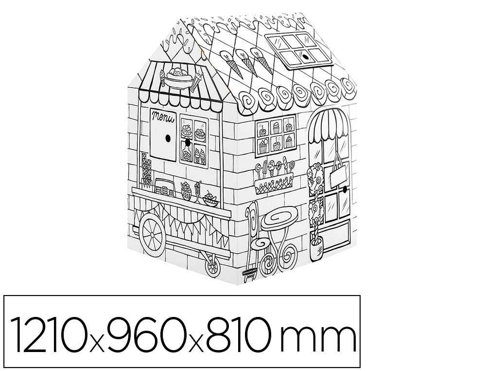 Esta gran casa de juegos para colorear ayuda a fomentar la interacción infantil, el juego imaginativo y colaborativo. Horas de juego para niños, ya que está hecho de cartón corrugado resistente y duradero con bordes redondeados. Rápido de montar, sin necesidad de adhesivos, gracias al ingenioso diseño de 2 piezas. Diseño interactivo y divertido, puedes abrir y cerrar puertas y ventanas. Deje que su hijo exprese su creatividad coloreando el diseño preimpreso (rotuladores/pinturas no incluidos).La casa de juegos, de origen responsable, está hecha de cartón certificado FSC, impresa con tinta no tóxica y se puede reciclar por completo. Medidas completamente ensambladas: 121 x 97 x 81 cm.