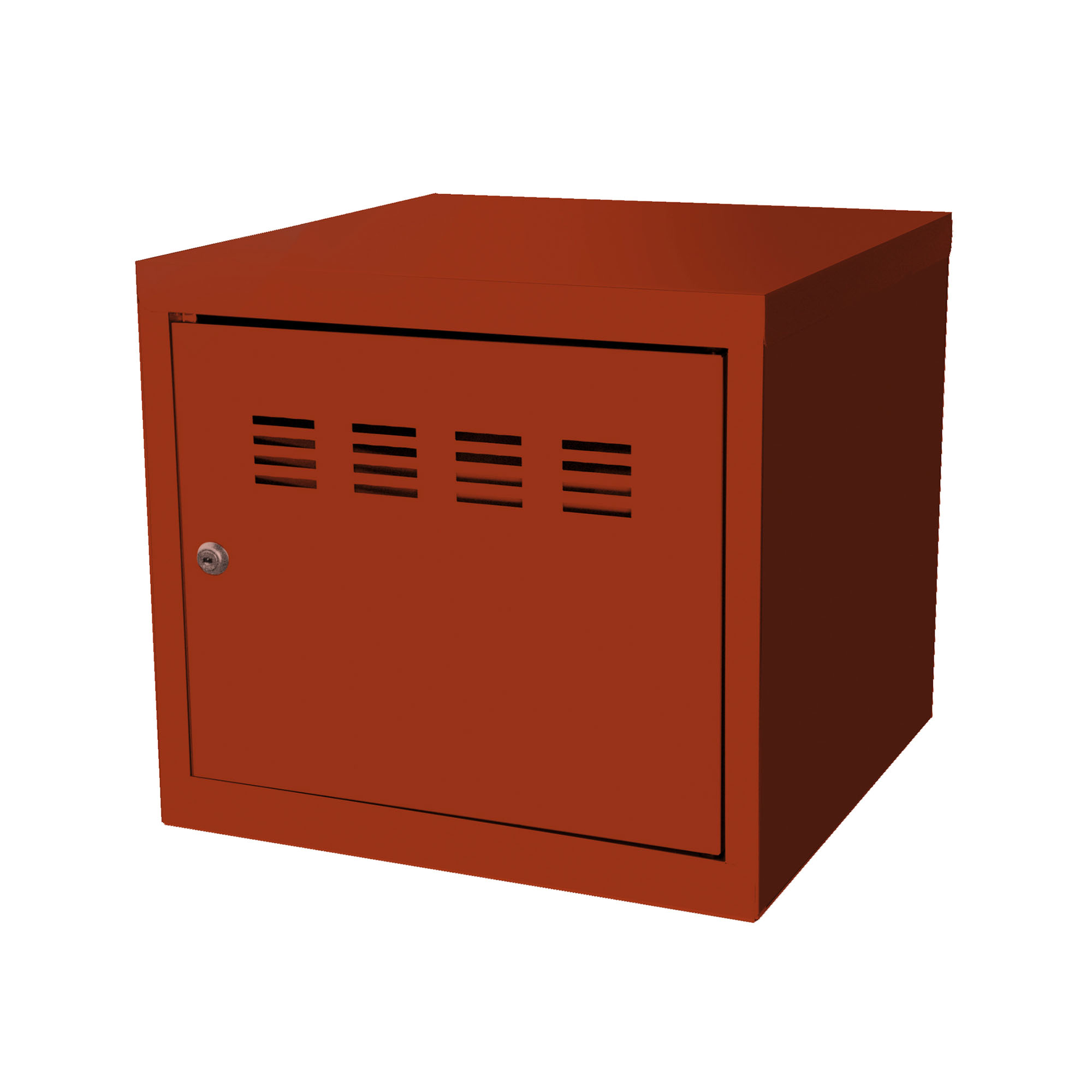 Estructura: chapa de acero 8/10º lacado epoxi. Puerta batiente con cerradura ( 2 llaves incluidas). Entregado con un kit de unión de plastico negro que permite apilar las modulos. Entregado montado. Kit de unión por fijar.