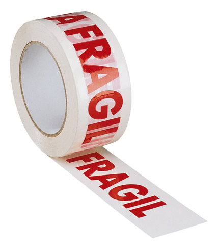 Descripción detalladaCinta de polipropileno blanca con impresión Frágil en rojo.Resistencia elevada al estiramiento.Grosor 28 micras.
