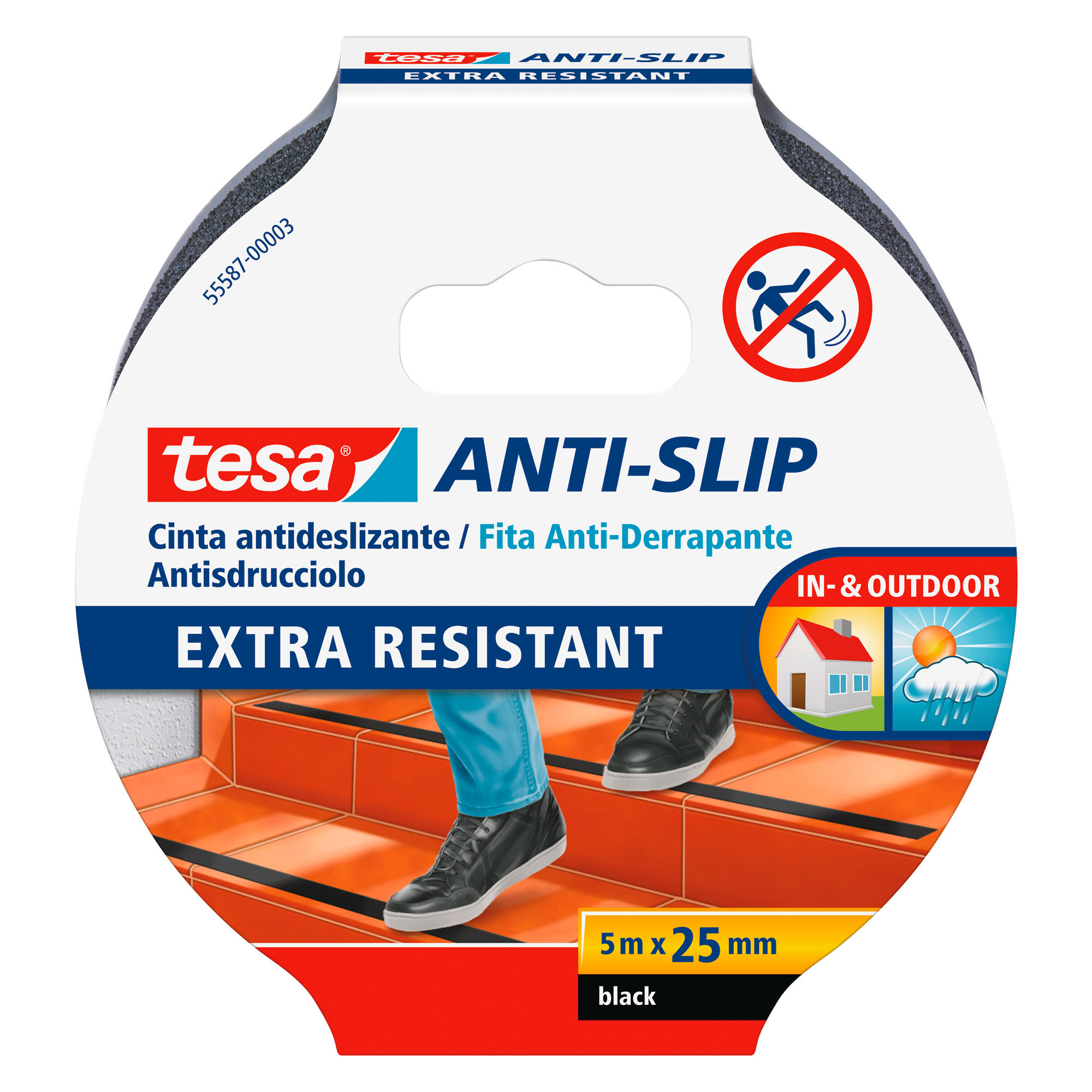 Ideal pa evitar el peligro de caída en escaleras, rampas, embarcaciones o cualquier otra superficie resbaladiza. Uso interno y externo. Tiras extremadamente fuertes y duraderas. Resistente al agua, a la intemperie, rayos ultravioleta y a los productos de limpieza. Largo: 5 m An. 25 mm. Color negro.