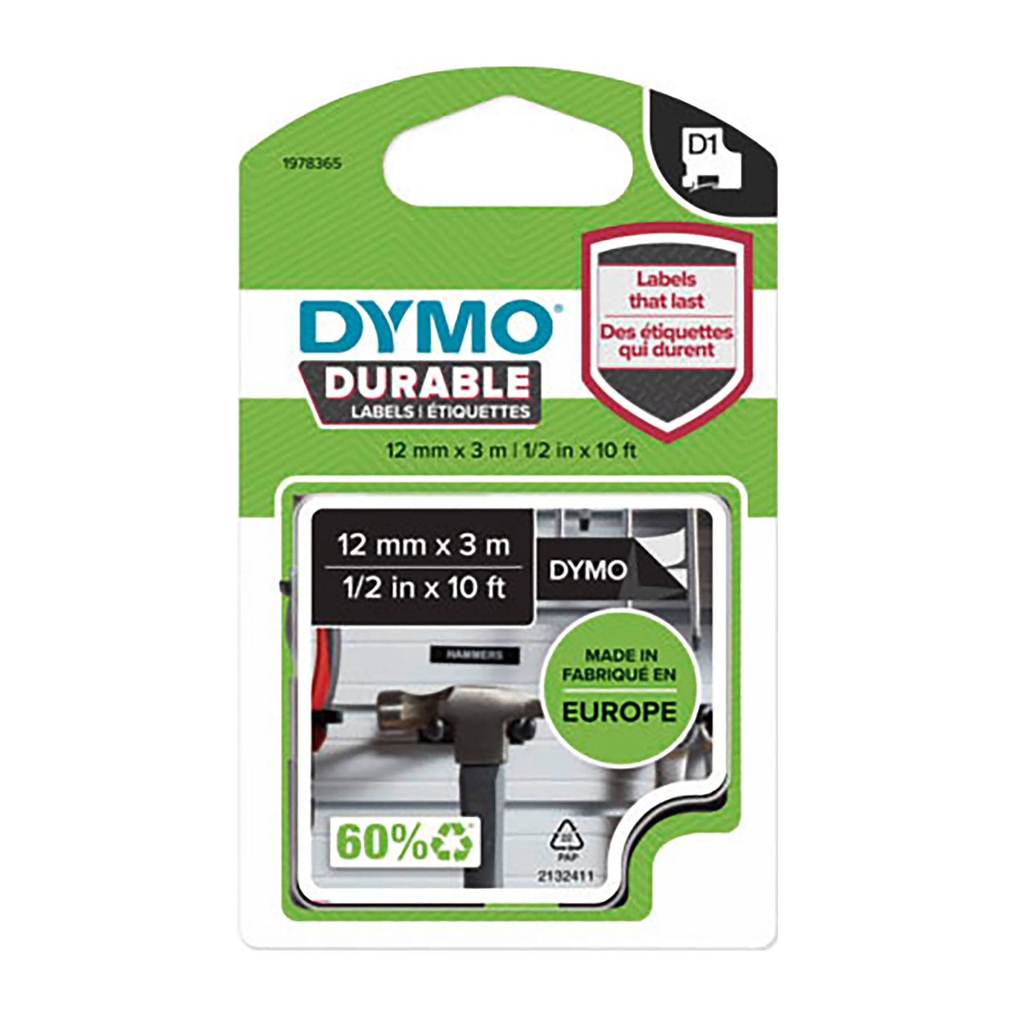 Alta resistencia frente a las etiquetas DYMO D1 estándar. Resistente al lavavajillas. Resiste al calor o frío extremo, a la luz del sol, a la abrasión. Apto para uso en interiores y exteriores. Se adhiere a las superficies curvas. Tecnología de impresión por transferencia térmica. Color escritura: Blanco / Color fondo: Negro.