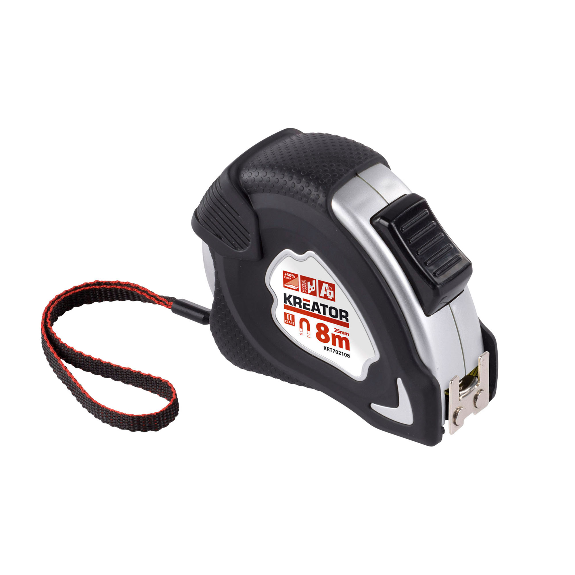 Consigue mediciones precisas y sin esfuerzo con la cinta métrica Kreator imantada.