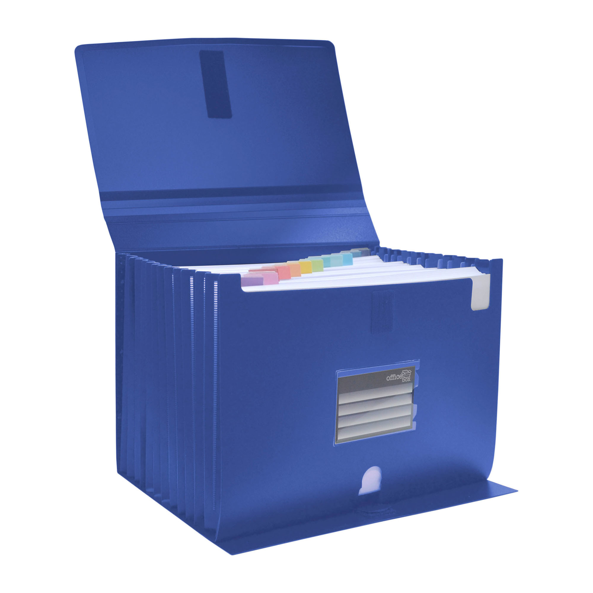 Descripción detalladaClasificador de fuelle con acordeón extensible. Incorpora 12 divisiones con etiquetas de cartón a color para clasificar y porta tarjetas. Fabricado en polipropileno, con cierre cierre V-lock y base. Lomo: 40 mm.Medidas: 330 x 240 mm.