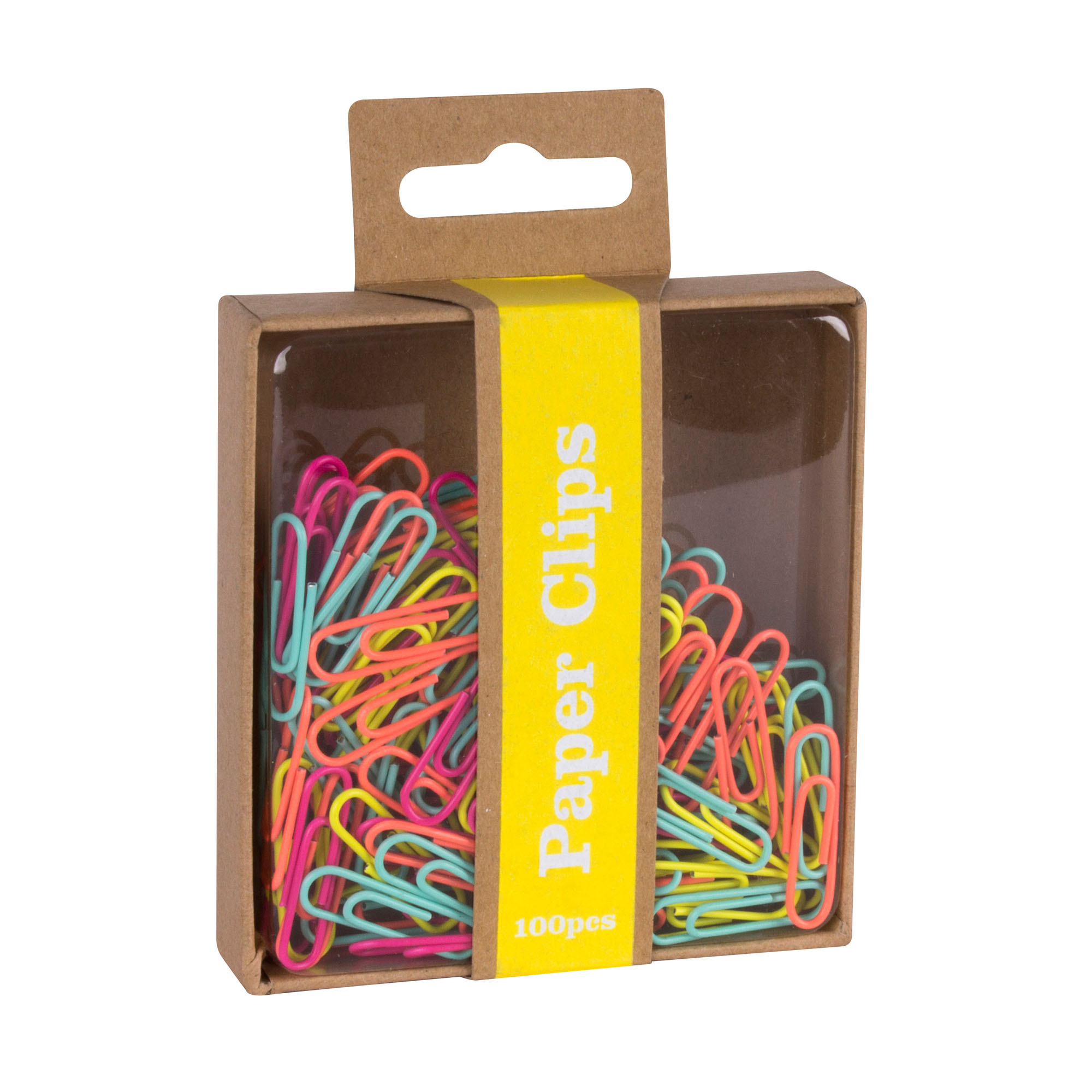 Descripción detalladaClips de la gama Fluor Collection. Caja de cartón kraft que incluye 50 clips de colores fluorescentes surtidos: fucsia, amarillo, naranja y turquesa.