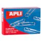 caja de 100 clips niquelados de Apli te ayudarán a mantener apuntes e informes de tu escritorio en orden. Estos clips son una herramienta práctica a la que todos hemos acudido en algún momento, ya sea en casa, la escuela o la oficina. El acabado niquelado en tono plata le proporciona un aspecto más profesional al mismo tiempo que resistencia al desgaste. Su tamaño estándar resulta muy adecuado para una amplia variedad de aplicaciones, sujetando desde pocas hojas hasta bloques más gruesos de documentos.