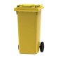 Muy manejable gracias a 2 ruedas anchas (Ø 200 mm) y el asa para transportarlo. Capacidad de 120 litros.