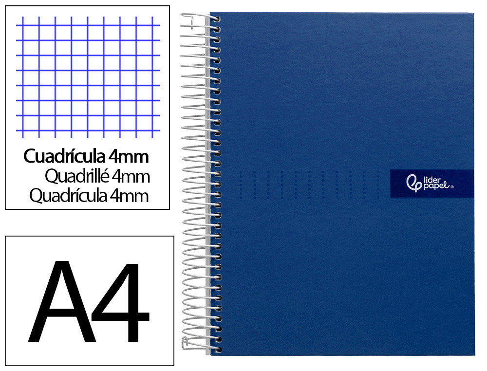 Cuaderno espiral liderpapel a4 crafty tapa forrada 80h 90gr cuadro 4mm con margen color azul marino