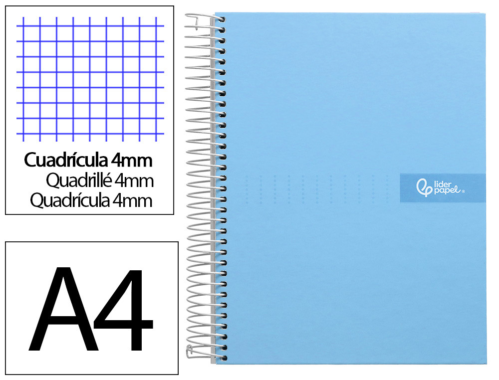 Cuaderno espiral liderpapel a4 crafty tapa forrada 80h 90gr cuadro 4mm con margen color celeste