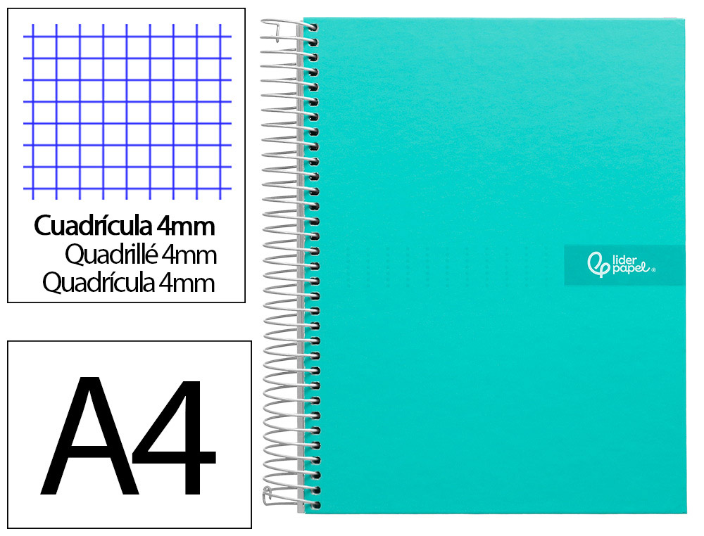 Cuaderno espiral liderpapel a4 crafty tapa forrada 80h 90gr cuadro 4mm con margen color turquesa