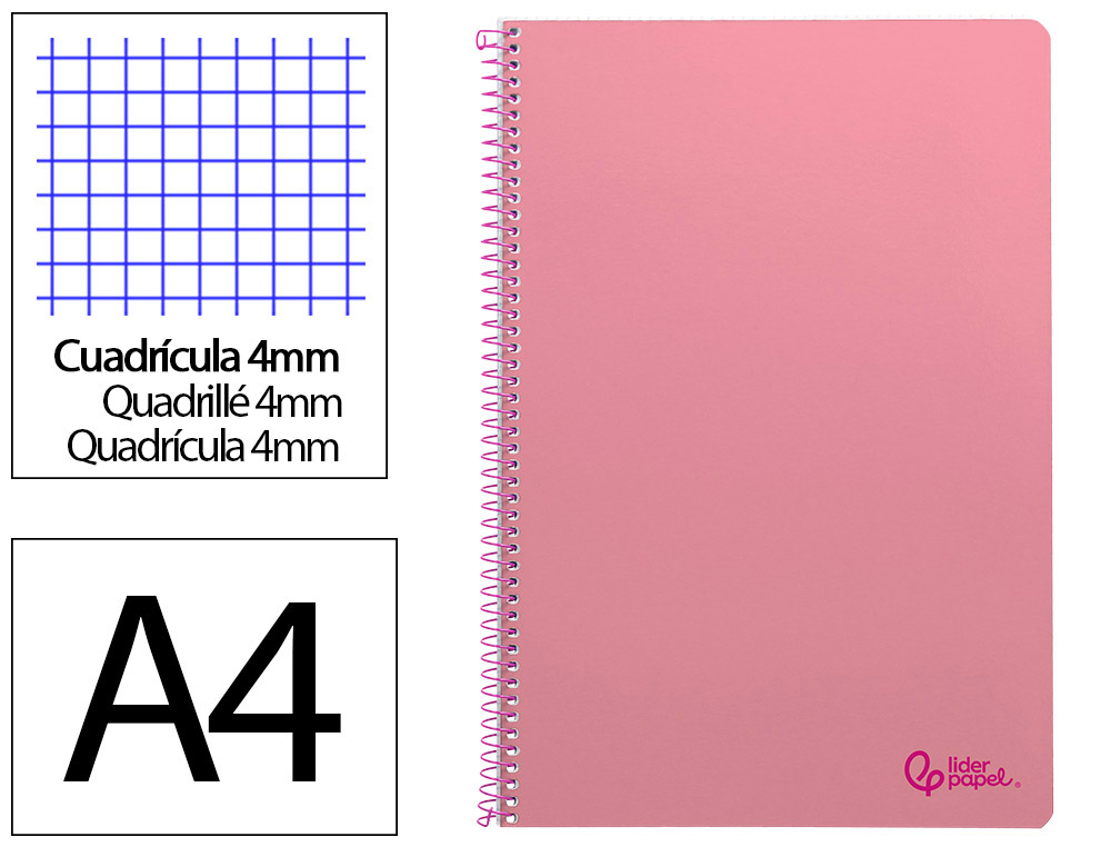 Cuaderno espiral liderpapel a4 smart tapa blanda 80h 75gr cuadro 4mm con margen color rosa