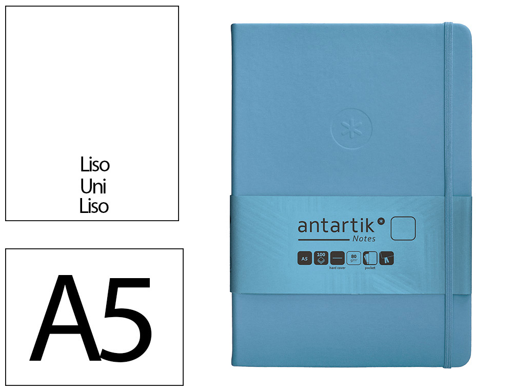 Sumérgete en el estilo de moda y práctico de la colección Antartik Notes. Este cuaderno tiene un diseño elegante con la estrella genial de Antartik impresa en relieve, dándole un toque de diseño único. Cubierto en simil piel, proporciona un tacto ultra suave. Cuenta con un cierre elástico con gomilla, 2 marcapáginas para organizar y acceder fácilmente a distintas secciones. Además, ofrece un bolsillo tipo sobre, ideal para guardar tarjetas o pequeñas notas. Antartik Notes tiene hojas de papel de alta calidad de 80 gramos y certificación FSC, ofreciendo una superficie óptima para escribir, dibujar o plasmar tus ideas creativas. La clave está en la versatilidad de su uso: desde el día a día, en el trabajo, hasta la captura de ideas,as, proyectos o creación de bocetos creativos. CARACTERÍSTICAS: Tamaño A5 TAPA DURA HOJAS LISAS 100 HOJAS COLOR AZUL CLARO 80 g.
