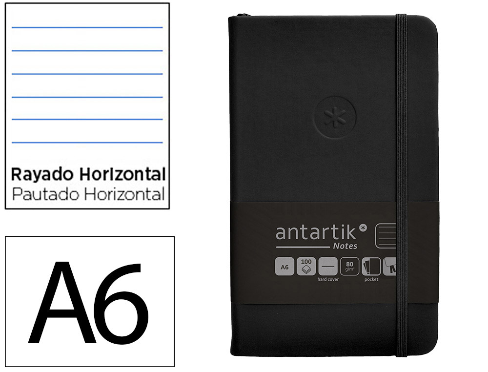 Sumérgete en el estilo de moda y práctico de la colección Antartik Notes. Este cuaderno tiene un diseño elegante con la estrella genial de Antartik impresa en relieve, dándole un toque de diseño único. Cubierto en simil piel, proporciona un tacto ultra suave. Cuenta con un cierre elástico con gomilla, 2 marcapáginas para organizar y acceder fácilmente a distintas secciones. Además, ofrece un bolsillo tipo sobre, ideal para guardar tarjetas o pequeñas notas. Antartik Notes tiene hojas de papel de alta calidad de 80 gramos y certificación FSC, ofreciendo una superficie óptima para escribir, dibujar o plasmar tus ideas creativas. La clave está en la versatilidad de su uso: desde el día a día, en el trabajo, hasta la captura de ideas,as, proyectos o creación de bocetos creativos. CARACTERÍSTICAS: Tamaño A6 TAPA DURA HOJAS RAYAS 100 HOJAS COLOR NEGRO 80 g.