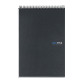 Cuaderno Miquelrius formato REPORTER, tamaño A4 (210 x 297 mm). Cubiertas: Cartón extra duro de 1 mm en color grafito plastificado, compacto y super resistente. Espiral: Metálica continua que permite la apertura en plano del cuaderno, además de dar la vuelta completa, y con cierre coilock que evita enganches. Papel interior: extra opaco de 70 g, evita que la tinta traspase y seca rápidamente. Hojas: 120 hojas con 4 bandas de color en el lateral (30 hojas por color), ideales para poder clasificar apuntes y usar un color para cada asignatura; cabecera para títulos; microperforado para un arranque limpio y 4 taladros para archivar. Rayado: Cuadrícula 5 mm. Ideal para zurdos y diestros.