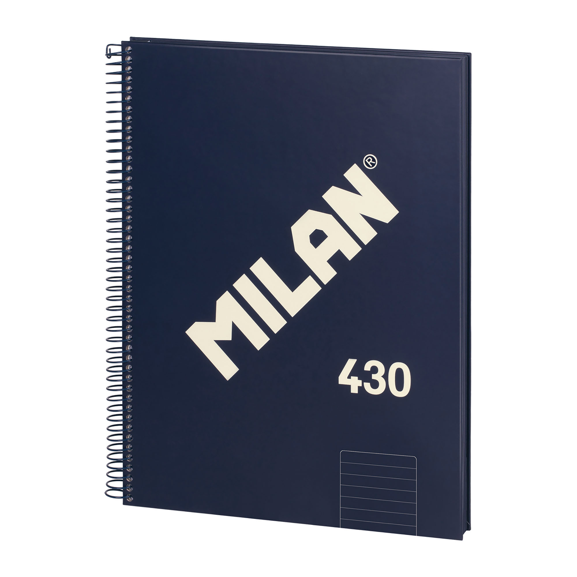 Cuaderno con cubierta de cartón rígido. Portada inspirada en las gomas MILAN fabricadas des de 1918, Logotipo en