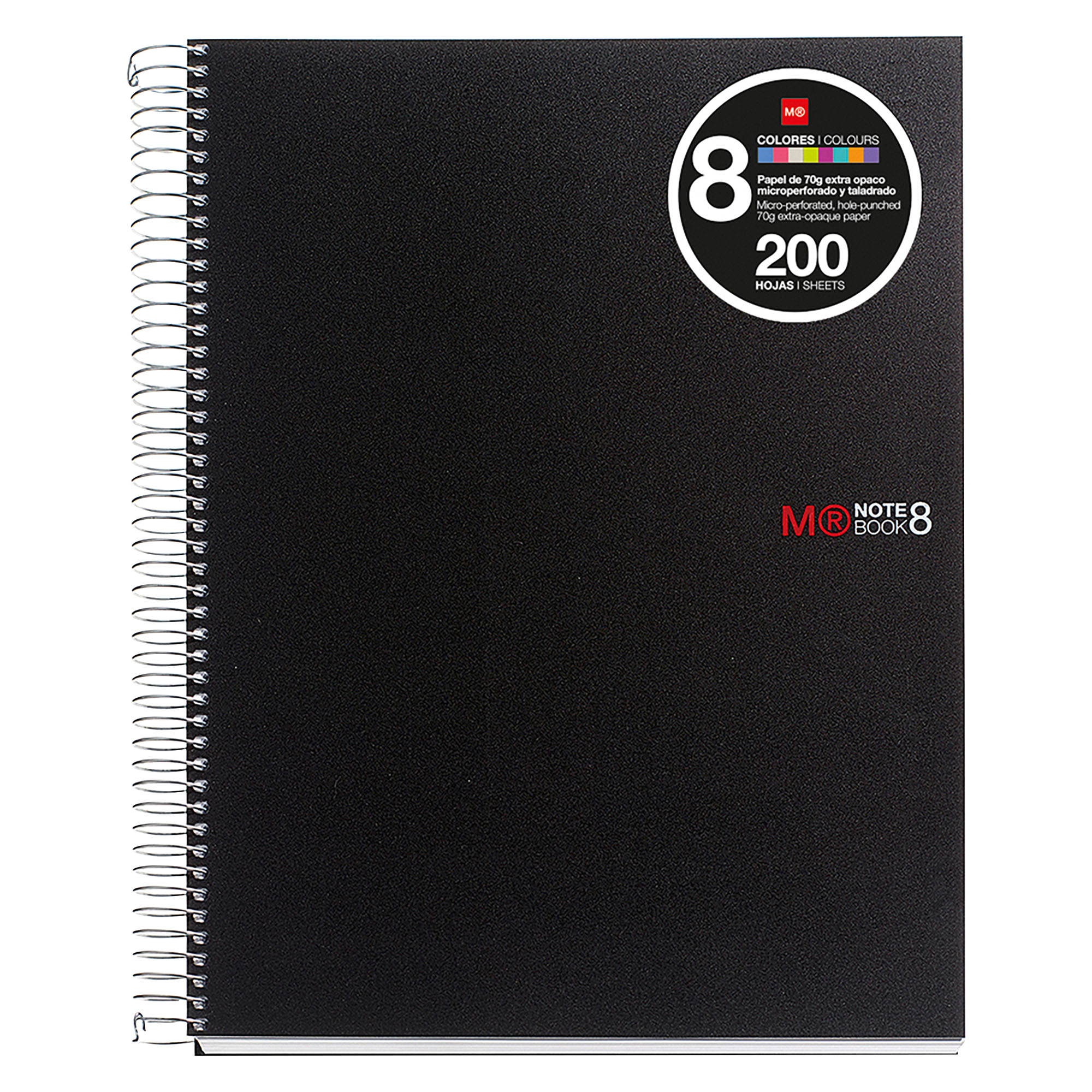 Descripción detalladaLibreta de espiral y tapa de polipropileno. Contiene 200 hojas microperforadas y con taladros para su archivo. Dispone de 8 bandas de colores disitintos. (25 hojas por color) Tamaño A5.