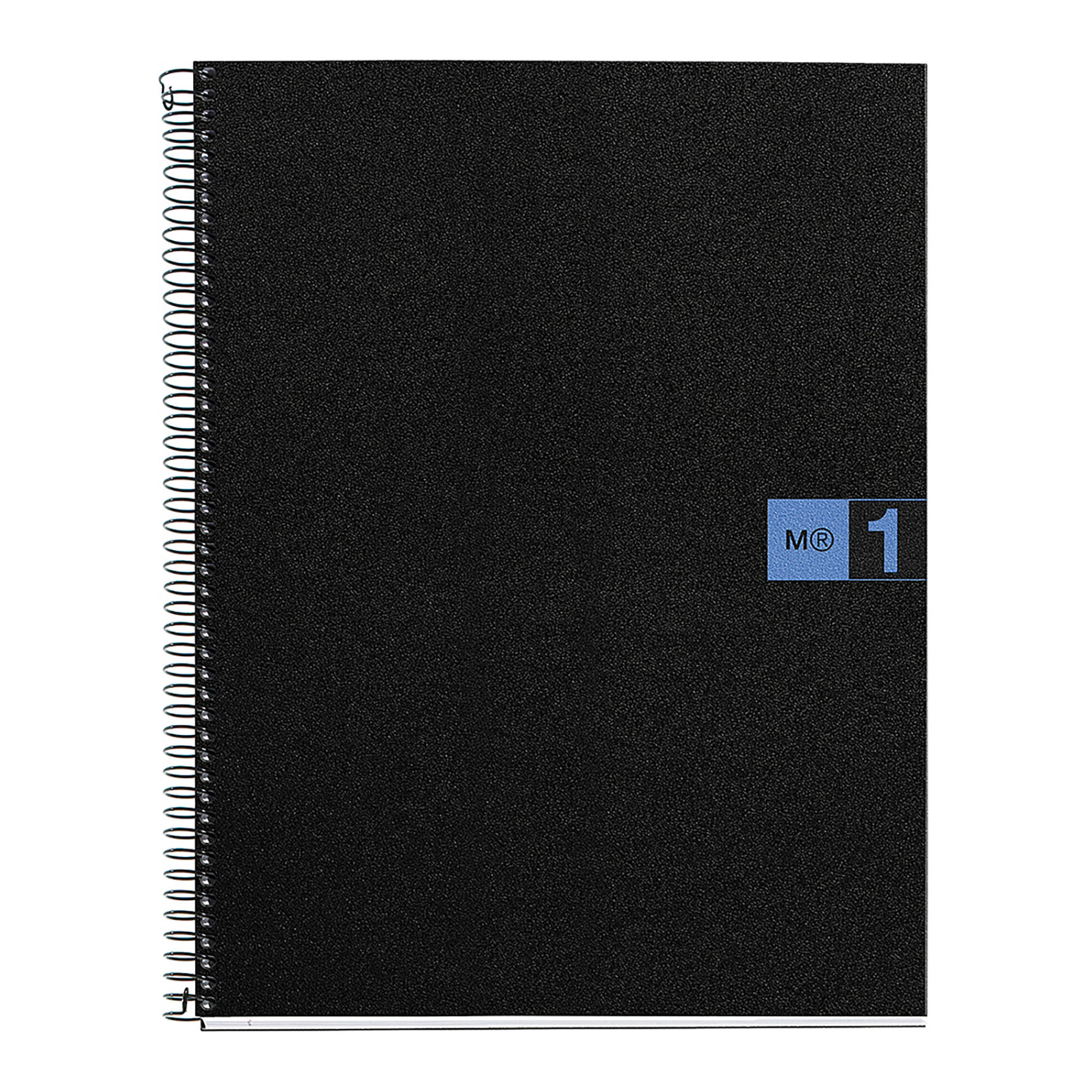 Cuadernos con tapa de polipropileno negro con marca y banda en el color elegido. Papel blanco extra opaco de 70 g/m2 con una suavidad perfecta para la escritura y que no traspasa con la certificación FSC. Hojas microperforadas y taladradas para poder archivar. Espiral cuenta con el sistema coilock, que permite la abertura en plano. Cabecera para títulos. Cuadricula 5 mm. Tamaño A5
