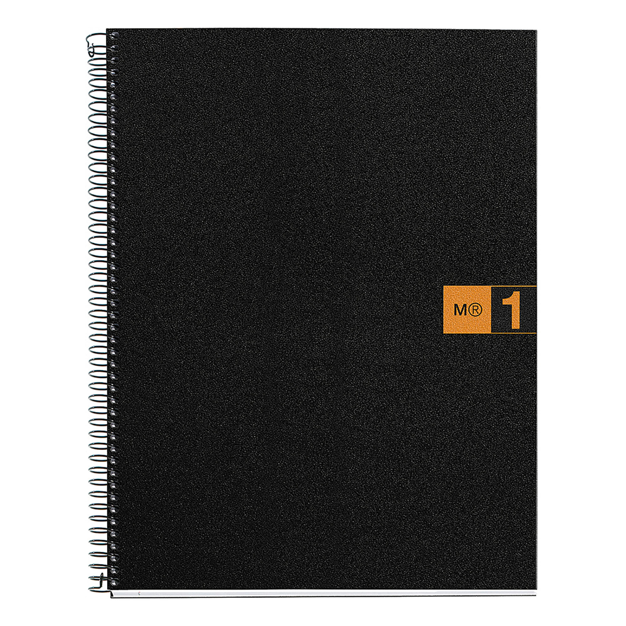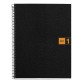 Cuadernos con tapa de polipropileno negro con marca y banda en el color elegido. Papel blanco extra opaco de 70 g/m2 con una suavidad perfecta para la escritura y que no traspasa con la certificación FSC. Hojas microperforadas y taladradas para poder archivar. Espiral cuenta con el sistema coilock, que permite la abertura en plano. Cabecera para títulos. Cuadricula 5 mm. Tamaño A5