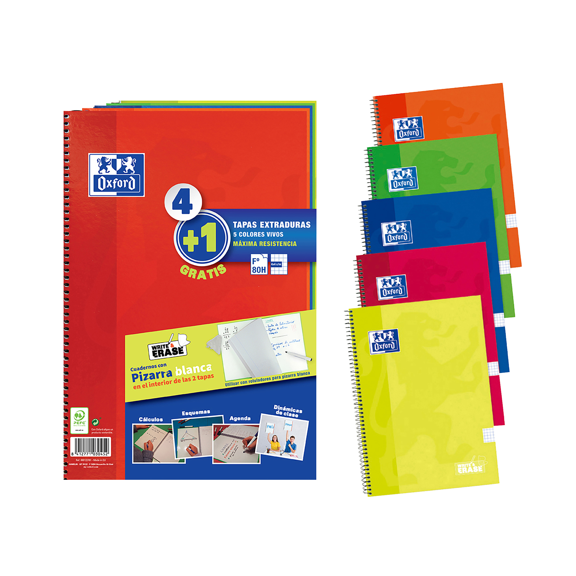 Cuadernos Write&erase tapa dura Fº 80 hojas 4x4 colores vivos Oxford - Pack 4 + 1 GRATIS