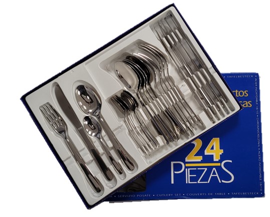 Descripción detalladaCubertería de acero inoxidable, 24 piezas para un total de 6 comensales. Contiene:6 Cuchillos6 Tenedores6 Cucharas6 Cucharas postre