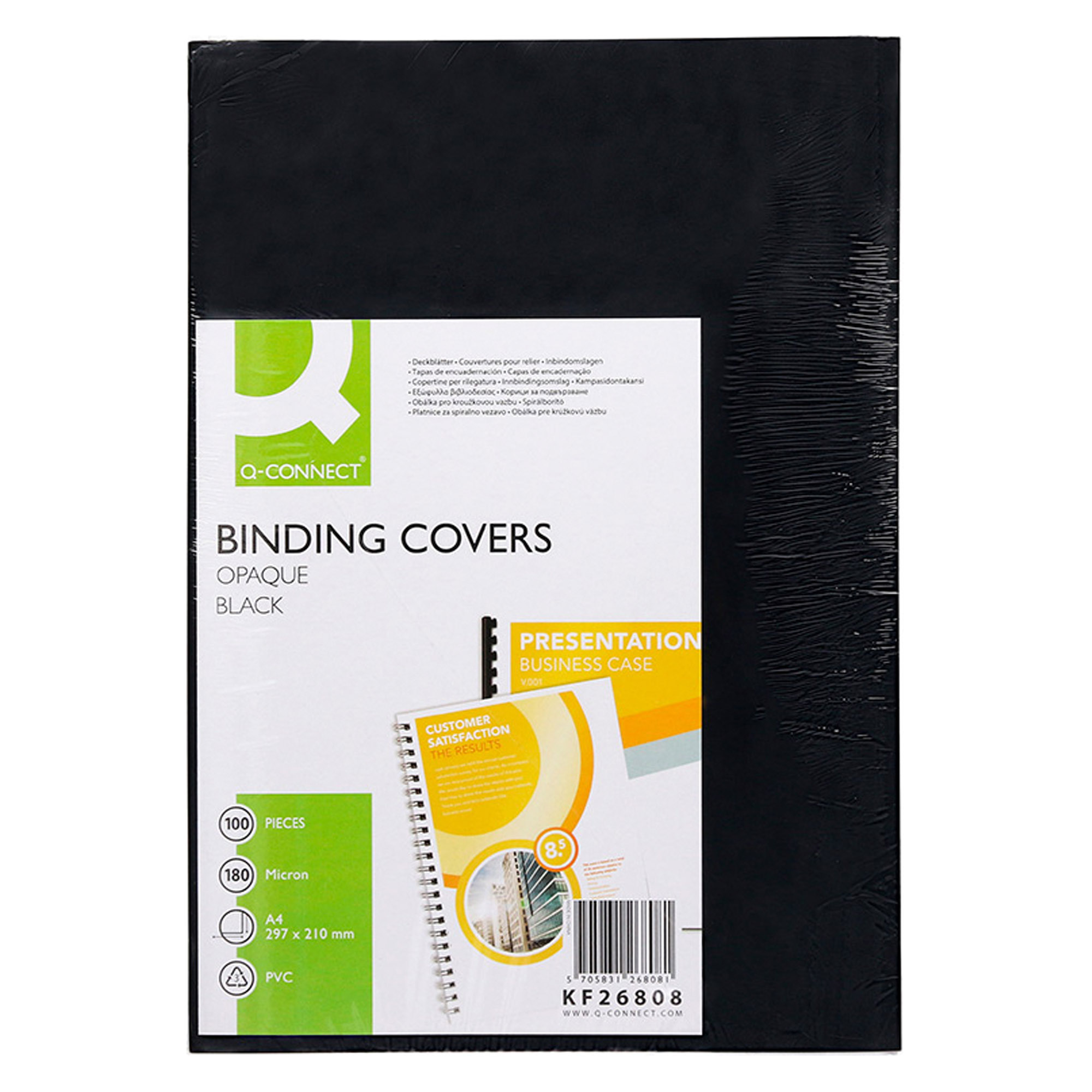 Descripción detalladaTapa de encuadernación Q-connect PVC A4 opaca negra 180 micras paquete de 100 unidades.Encuadernación en espiral, canutillo, anillas y otros.
