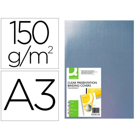Descripción detalladaLáminas en PVC de diferentes grosores y formatos para encuadernación en espiral, canutillo, anillas y otros. Paquete 100 unidades.