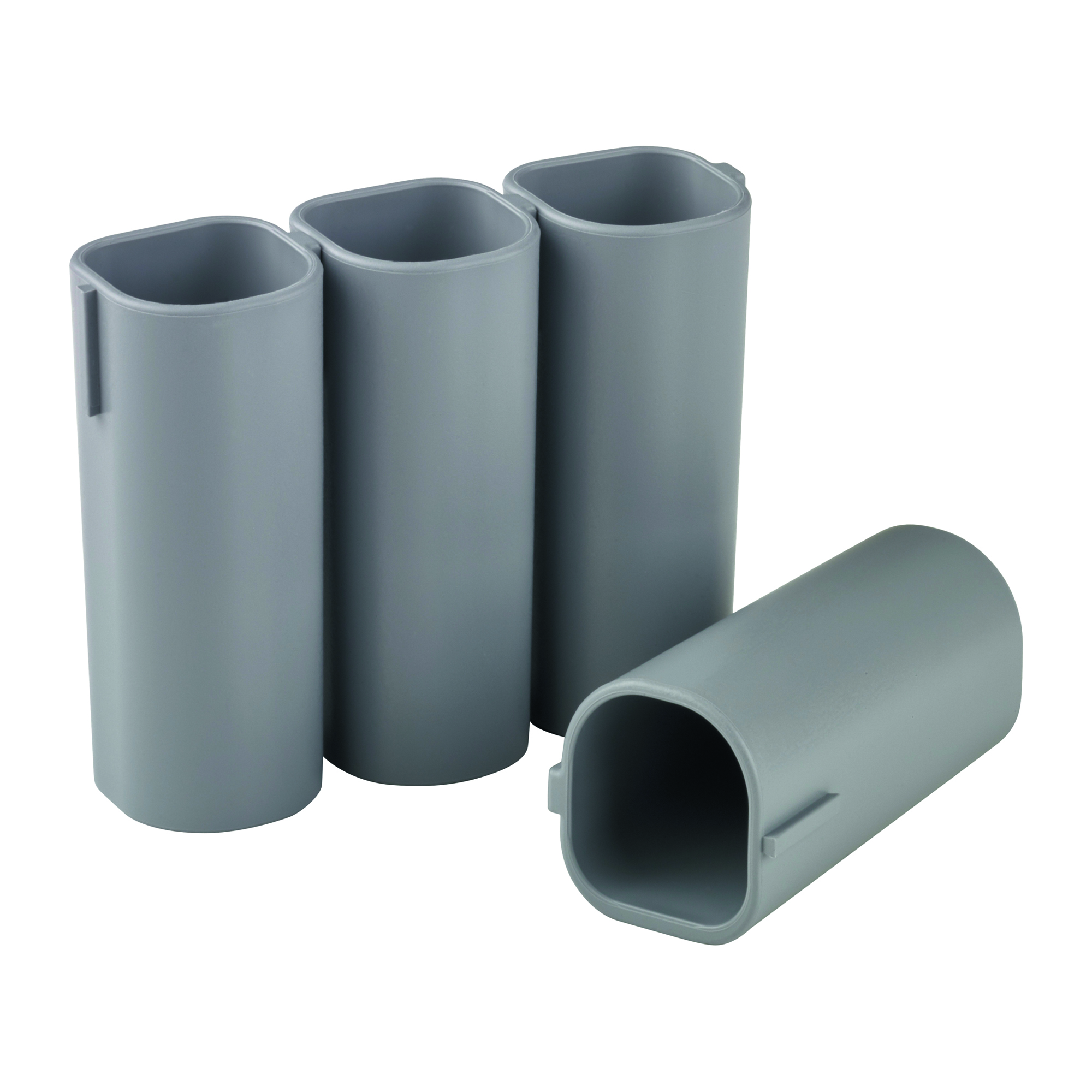 Cubiletes, magnéticos para rotuladores. Perfectos para pizarra magnética o cualquier superficie metálica. En casa o en la oficina siempre los tendrás localizados. Diseñado para poder utilizarse de forma individual, o formando bloques para tener a nuestra disposición cuantos elementos de escritura deseemos, basta con unir con un simple desplazamiento la parte derecha con la izquierda. Paquete de 4 unidades color gris.